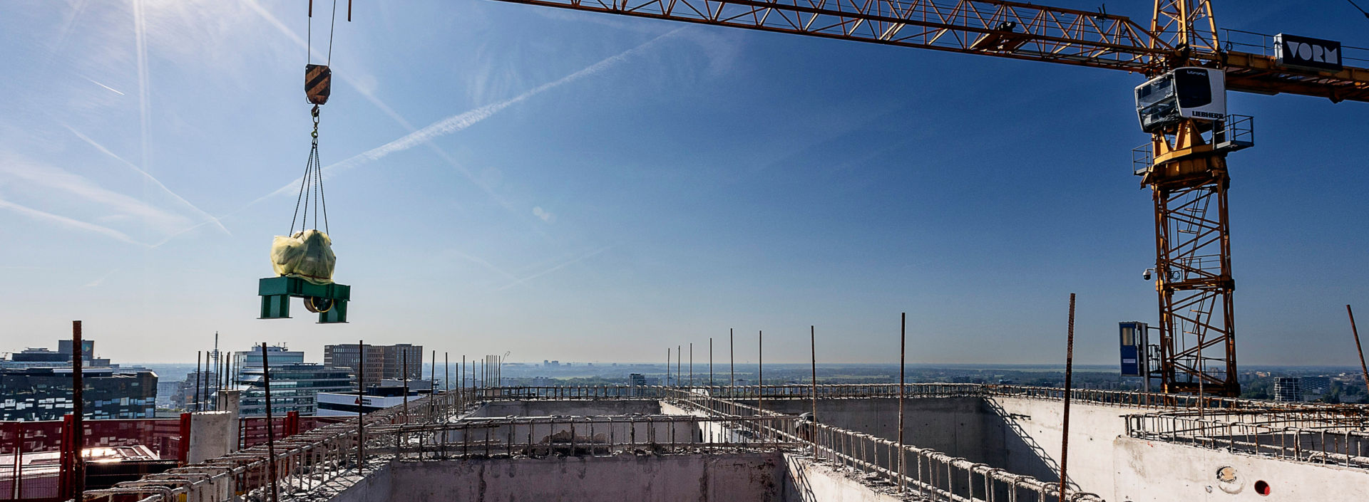 Rond 19 juli is het zover: dan hijst KONE de liftmachines op de juiste plek. In september start de installatie van de dubbeldeksliften. Dit duurt zo’n 25 weken. Maar ook nu is KONE al druk bezig. “In de kantoortoren zijn we al bezig met het installeren van zes liften. Ook al is het gebouw nog niet op volledige hoogte, wij gaan toch al aan de slag met de schacht. Als het gebouw dan het hoogste punt heeft bereikt, zijn wij sneller klaar met de lift en kan onze klant hier sneller gebruik van maken. Binnen KONE proberen we zo onze klanten volledig te ontzorgen. Dit kan ik niet alleen, dit doen we samen met het complete projectteam, waaronder supervisor Niels den Hoet en onze engineer Rien Heuvelman.”